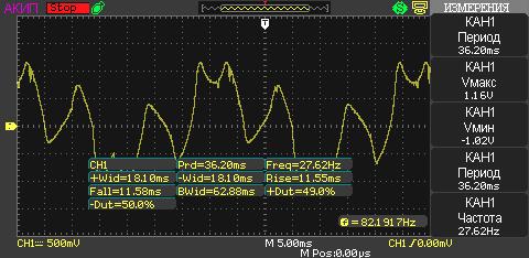 По полученным данным я пытался зажесь 100 ваттную 12 вольтовую лампочку - она загореться загорелась, но слабо, примерно однаЧетверть всей мощности. На осциллографе было напряжение 5 вольт.